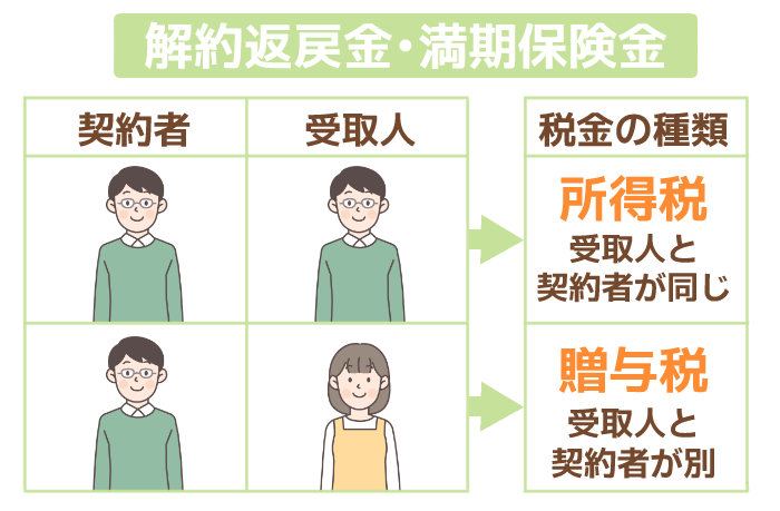 保険料を負担した人と受取人が別の場合は、解約返戻金から贈与税の基礎控除の110万円を引いた額が贈与税の課税対象となります。