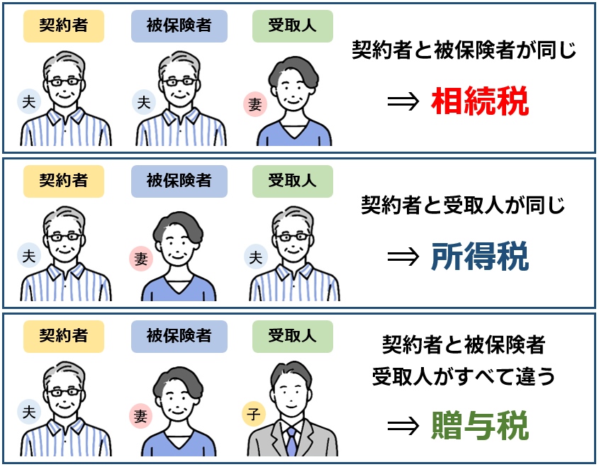 保険加入時には契約者・被契約者・受取人を決める必要がありますが、その関係性によってかかる税金の種類が異なるので注意が必要です。