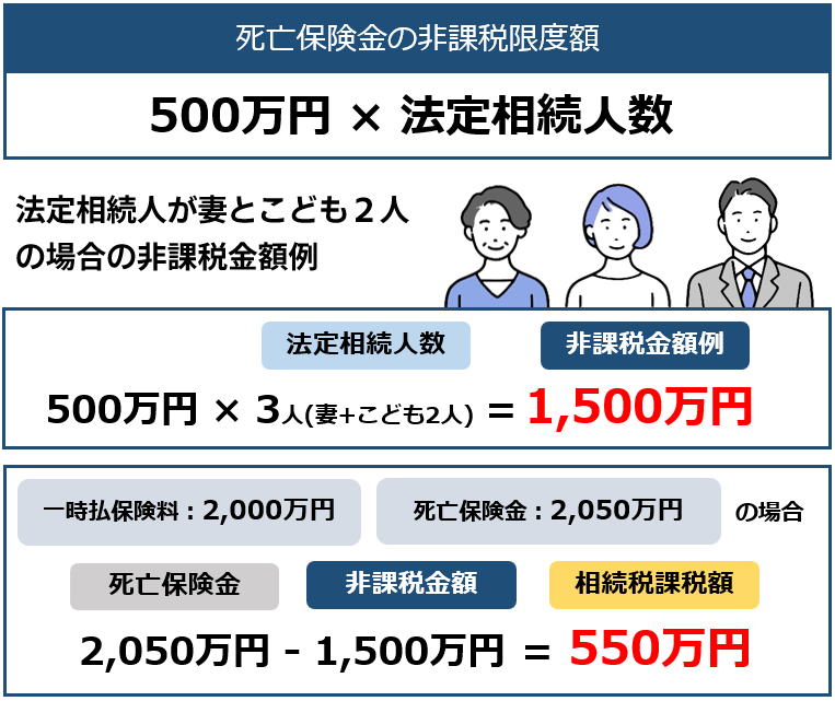 通常、亡くなった方の預貯金や不動産などは全て相続税の対象になりますが、死亡保険金には『非課税枠』があるため、課税対象額を減額する目的での利用が可能です。
