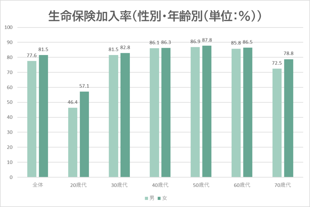 ただ、30代以降になると一気に加入率が上昇し、以降はどの年代でも8割以上の人が生命保険に加入。