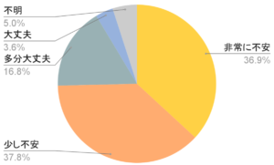 生命保険文化センターの2021年度「生命保険に関する全国実態調査(※1)」によると、就業不能時に不安を感じる割合は下記の通りです。