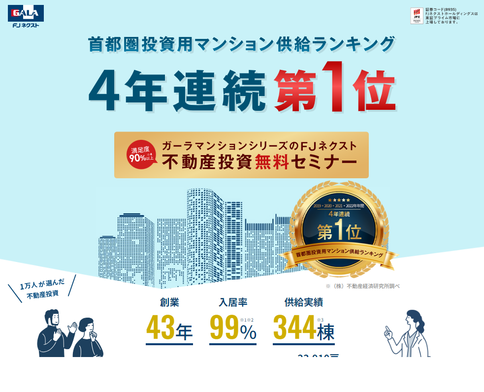 FJネクストは『ガーラマンションシリーズ』でも有名な不動産会社ですが、不動産投資が成功するのか、対応はどうなのかなど評判や口コミが気になりますよね。