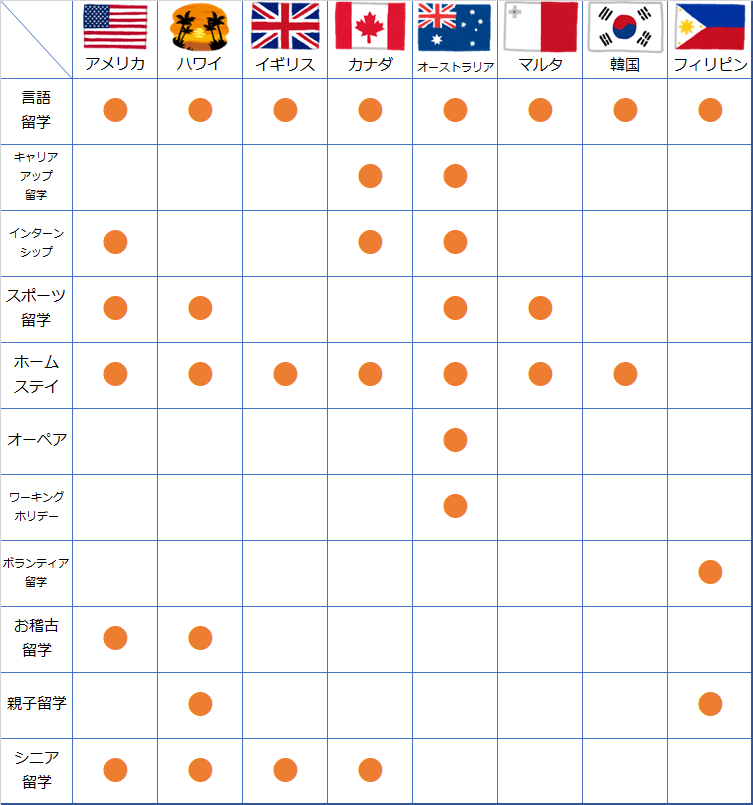 対応留学国 ・オーストラリア
